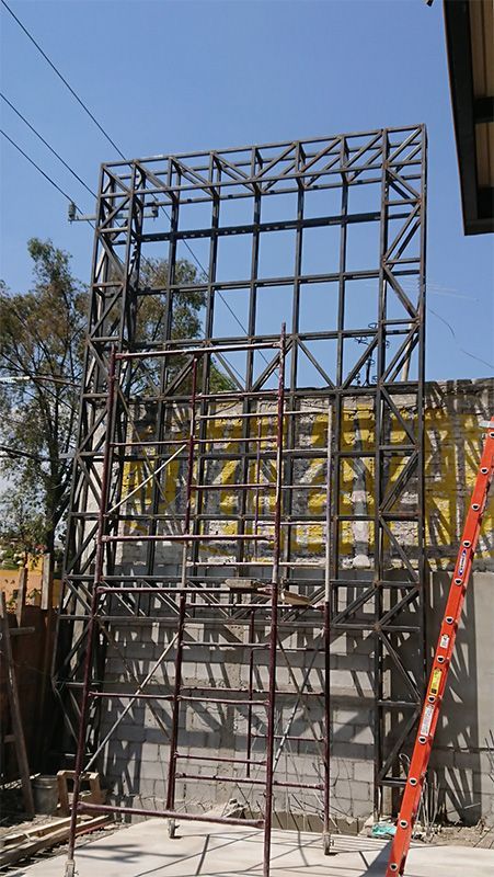 Somos expertos en espacios reducidos. En este proyecto no era posible el uso de grúas para el montaje, por lo cual todo el armazón fue montado con equipos manuales. El proyecto fue valuado en 3.5 MDP.