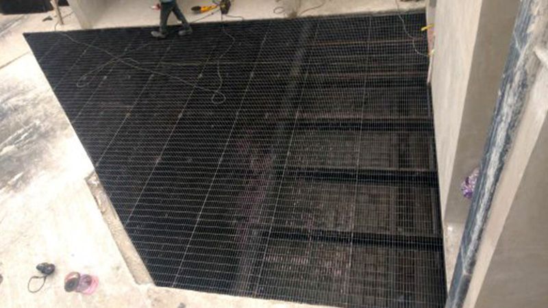 En la foto se muestra parte de la estructura de un volado que soporta una carga de 800 kg/m2.