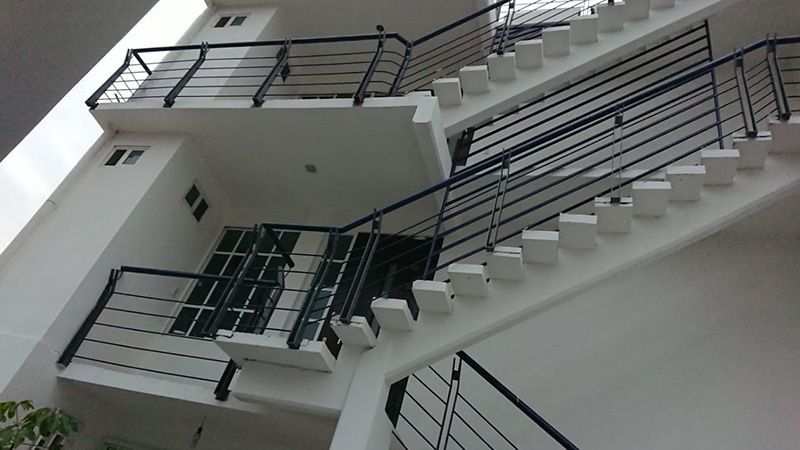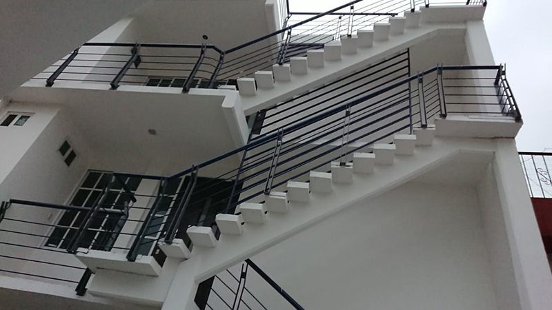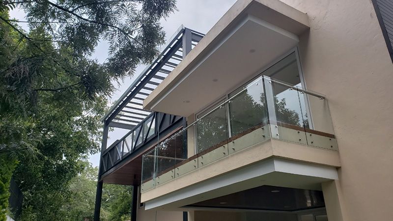 Diseño, construcción y montaje de barandal exterior para oficinas, en el que se utilizaron materiales adecuados para el exterior.